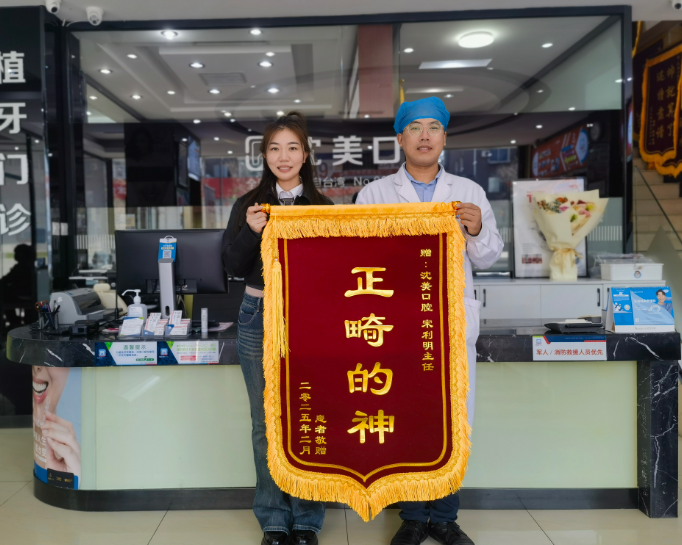 2025年3月22日沈美口腔东顺城门诊部宋利明主任获得患者赠送锦旗——“正畸的神”。
