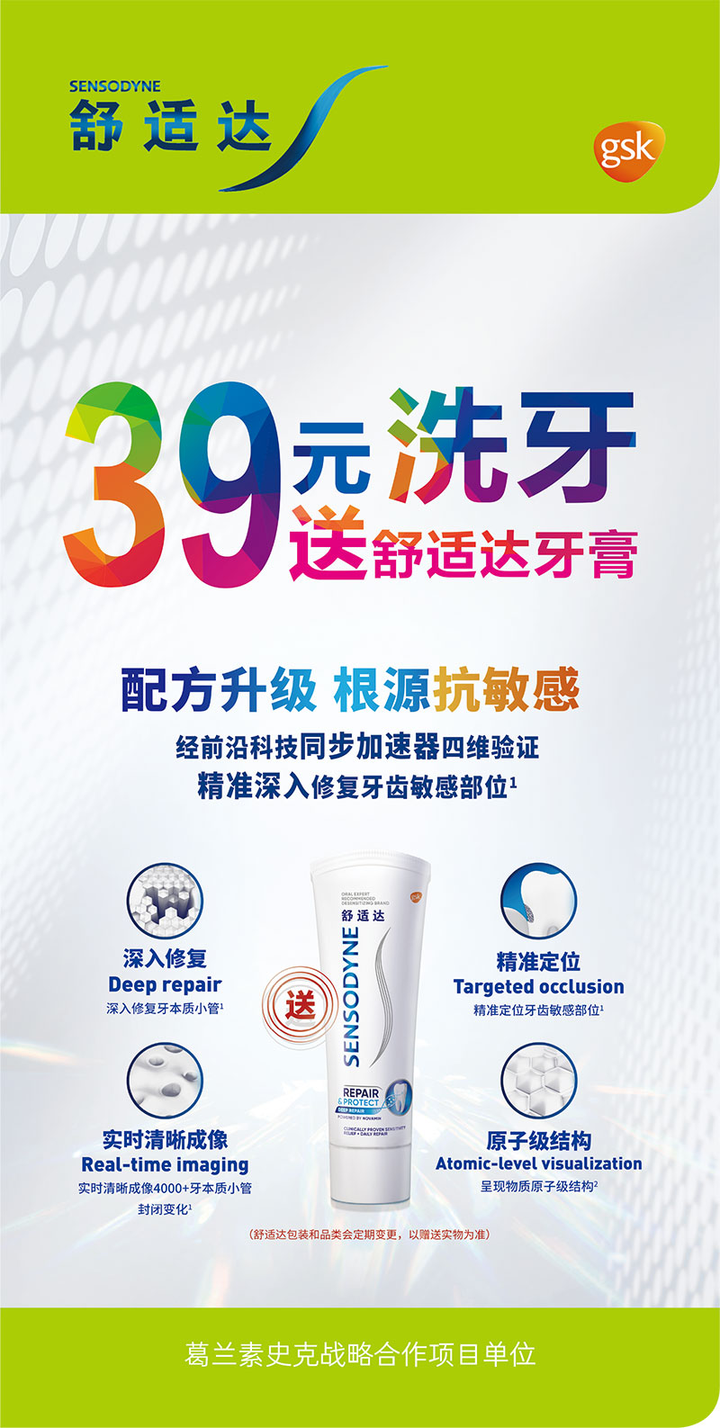 39元洗牙送舒适达牙膏