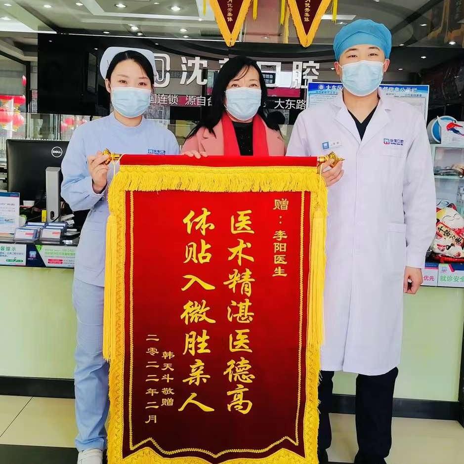 2022年3月7日沈美口腔东顺城门诊部李阳医生获得韩天斗患者赠送锦旗——“医术精湛医...