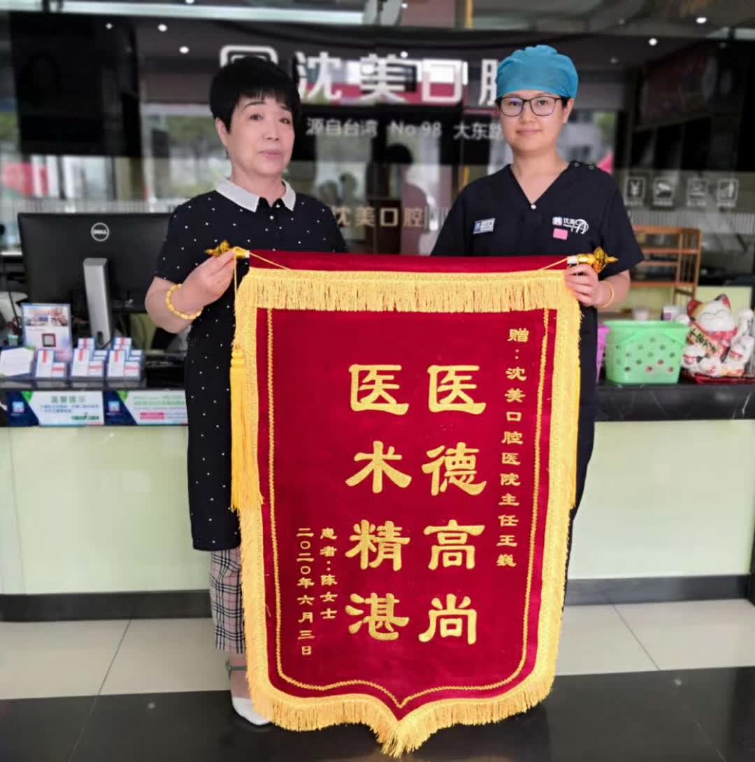 2020年6月3日沈美口腔东顺城门诊部王巍主任获得患者陈女士赠送锦旗——“医德高尚,医术精湛”
