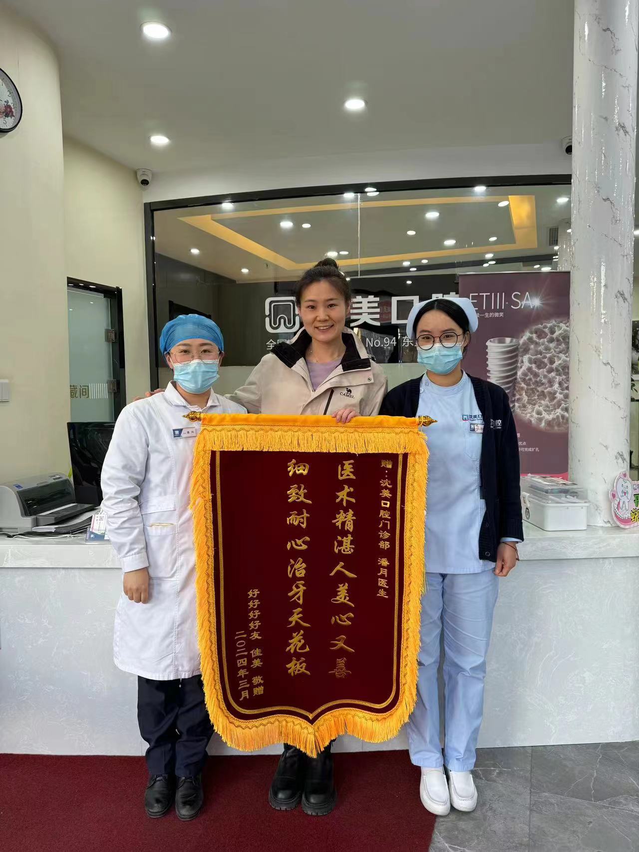 2024年3月31日沈美口腔东贸路门诊部潘月医生获得佳美患者赠送锦旗——“医术精湛人美心又善 细致耐心治牙天花板”